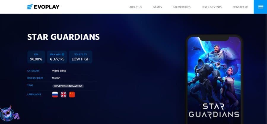 Evoplay is a Ukraine-based company primarily building video slots. The company holds over 50 titles, and no previous game has had such a big budget as Star Guardians. Evoplay also offers about 10 instant games and provides casinos with table and classic games.
