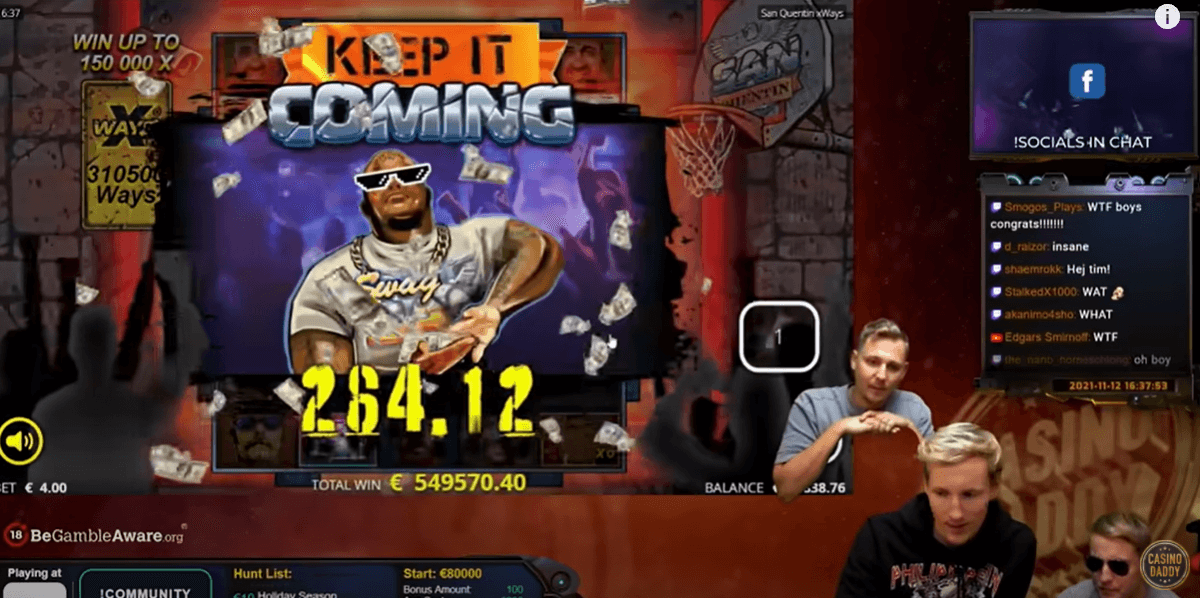 New world record by CasinoDaddy: Max win at San Quentin xWays!