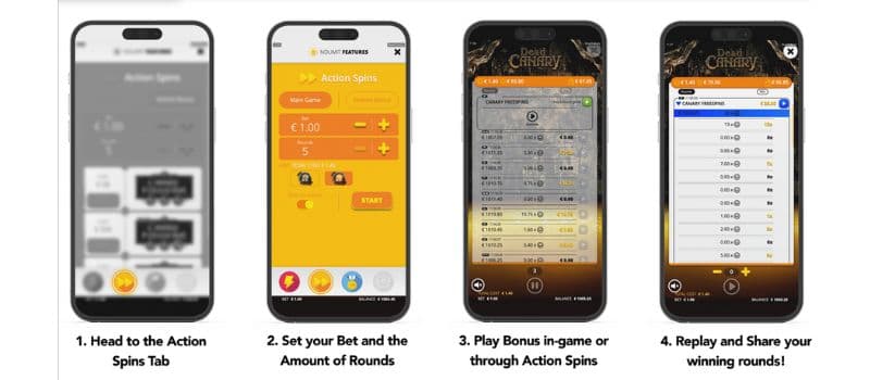 To start using Action Spins, players simply need to go to the designated tab and follow a few easy steps. First, they will need to set their bet amount and choose the number of rounds they want to play. Then, they have the option to either activate the bonus within the game or use the Action Spins interface. After, you are free to replay and share your winnings with others. It allows for a seamless and enjoyable gaming experience that is user-friendly.