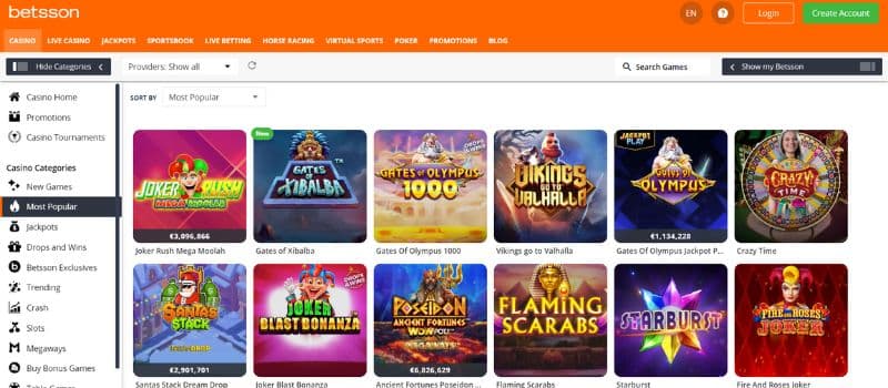 Betsson Casino offers gamblers in Europe appealing and first-class casino entertainment. The online casino is part of the Swedish gaming company Betsson, which can look back on more than 50 years of experience in the industry in 2021. Furthermore, the casino holds a license from the Malta Gaming Authority, which makes the platform trustworthy and secure for its users. You will find an extensive and high-quality range of games online at Betsson Casino. Fans of slot machines and video slots will get their money's worth on this platform. There are even slots that are exclusive to Betsson Casino. These include, for example, Schlager Millions, Blood Suckers 2, Mr. Toad, Oily Business, Big Wheel, and Piggy Bank.