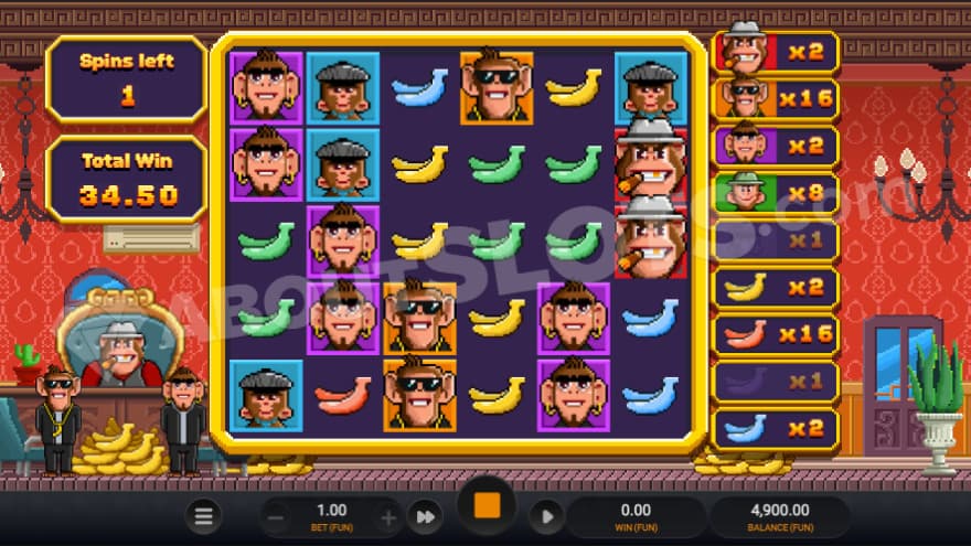 We’re always looking for fresh ways of using visuals to bring out the essence of mechanics in our games and add a Relax-twist to different themes, and Banana Town was no different. The initial idea was to have the game set in Gibraltar, given its igaming presence and relevance. We planned on having a gang of monkeys protect their rock by giving trespassers a hard time, but that narrative didn’t give us enough to work with from a visual stand point, and we never settle for ‘good enough’. In the end, we wanted to retain elements of the narrative whilst giving the monkeys their own characteristics, humanising them and instilling more personality, this ultimately led us to the monkey mafia concept we have today.