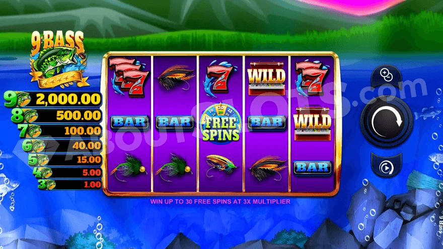 9 Bass is a new casino slot from Oros Gaming with the goal to catch some hard-to-get bass on the hook. This is not the first fishing episode in a video slot. In fact, we have already reviewed 6 games starring just this fish, with Reel Kingdom’s Big Bass Splash and Bigger Bass Bonanza being our favorites. In 9 Bass, the greenish fish pays for all combinations – they don’t have to be connected on paylines. The game’s name will probably make more sense when we tell you that you need to land 9 of these fishes anywhere on the grid to score the max win of 2000X the bet. Right now, you might even wonder why you came back from the sea in the first place because it’s time to grab the fishing gear and head out once again.