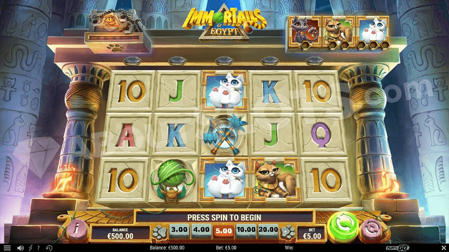 Immortails of Egypt is a new casino slot from Play'n GO starring the three cats Bastet, Mafdet, and Sekhmet. Cats were worshiped in ancient Egypt and treated far differently than in medieval Europe when the catholic church claimed them to be evil and in collusion with Satan. It's believed that the killing of cats in the 13th and 14th centuries helped spread the plague Black Death since rodent populations increased heavily due to the lack of cats. In Immortails of Egypt, the cats are once again highly valuable when they can turn into expanding wilds in the shape of gods. In the free spins, the player is treated with an extra row, and a multiplier that grows on tumbling wins.