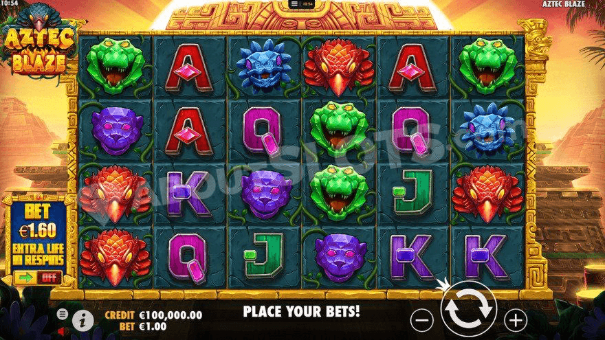 Aztec Blaze is a new casino slot from Pragmatic Slot where players once again get to dive into the Aztec empire, which we are no strangers to by now. This will be the fifth Pragmatic slot with an Aztec theme, together with popular games such as Aztec Bonanza and Aztec Gems Deluxe. Despite sharing the same theme and being relatively similar visually, these games all play differently, so don’t worry; this is not a copy. In this highly volatile game, you will look for consecutive winning combinations, rewarding you with gigantic symbols and massive wins.