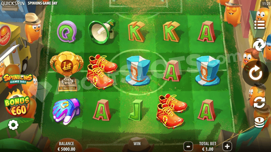 Spinions Game Day is a new casino slot from Quickspin where we once again get to meet the Spinions but at a whole new scene! It’s been six years since we were first invited to their beach party in the first version of the game, but barely a year ago, we attended their festive Christmas party in Spinions X-mas Party. If you’ve played one of the previous versions, you know that it’s all about creating juicy full lines with sticky wilds. In this sequel, they have modified that a bit. With a higher max win, a new theme, and roaming wilds, this is looking to be the best one yet, and we will tell you all about it later in this review. Now, these cute little creatures have organized a football tournament for us, so tie your shoes, grab your kit, and let’s play!