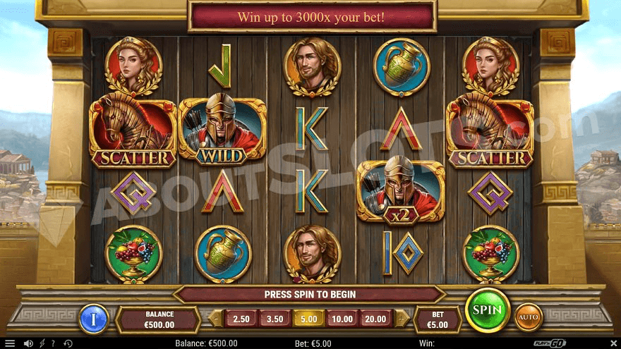 Gates of Troy is a new casino slot from Play’n GO telling the classic story of the Trojan Horse that the Greeks used to conquer the city of Troy. At least that’s what is said; historians aren’t sure that it actually happened. Anyway, the rumor has it that the Greeks gave the Trojans a big wooden horse after ten years of war. The Trojans didn’t know that the horse was full of Greek warriors, who came out at night after the horse had been rolled into the gated town. Your mission in Gates of Troy is to fight your way into the city with help from Achilles and Helen of Troy. Once in the free spins, you’ll experience an extra valuable last spin, bringing back the wild symbols from the previous spins.