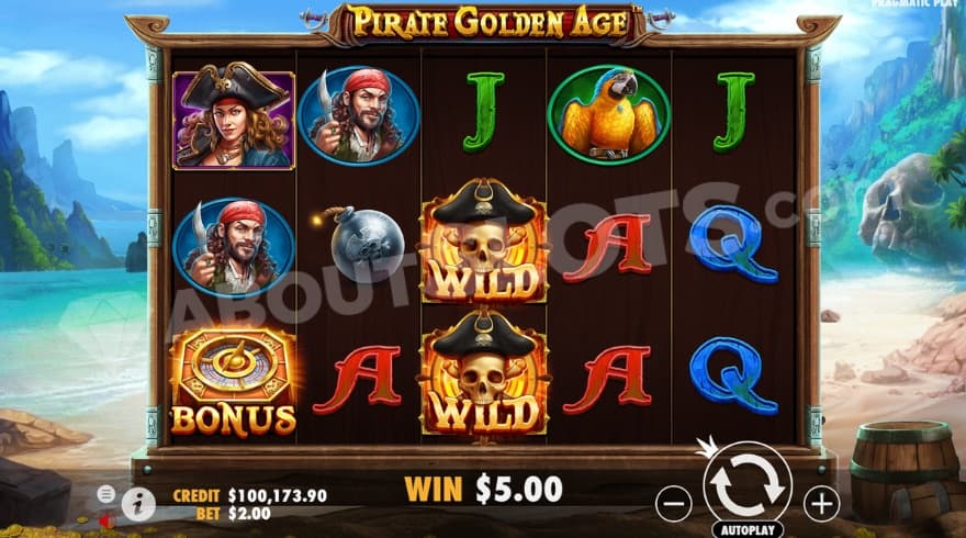 Pirate Golden Age is a new casino slot from Pragmatic Play where we get to travel to the Caribbean in search of treasures. Most of you will probably look at this game, and your mind will go directly to the Pirates of the Caribbean movies. After all, they made the theme huge in pop culture during the mid-2000s. But if we really want to unravel its origin, we’d have to go back to 1883, when author Robert Louise Stevenson published the book Treasure Island, which was also made into a movie in 1950. And just like Disney wasn’t the first company to create a pirate movie, Pragmatic is not the first provider to use the pirate theme. NetEnt used it in 2019 with Pirate from the East, and Red Tiger released Pirate’s Plenty Battle for Gold that same year. In fact, Pragmatic has used this theme before in Pirate Gold Deluxe, so they even beat themselves to it! You have now become an expert in this field, so let’s dig into this new release!