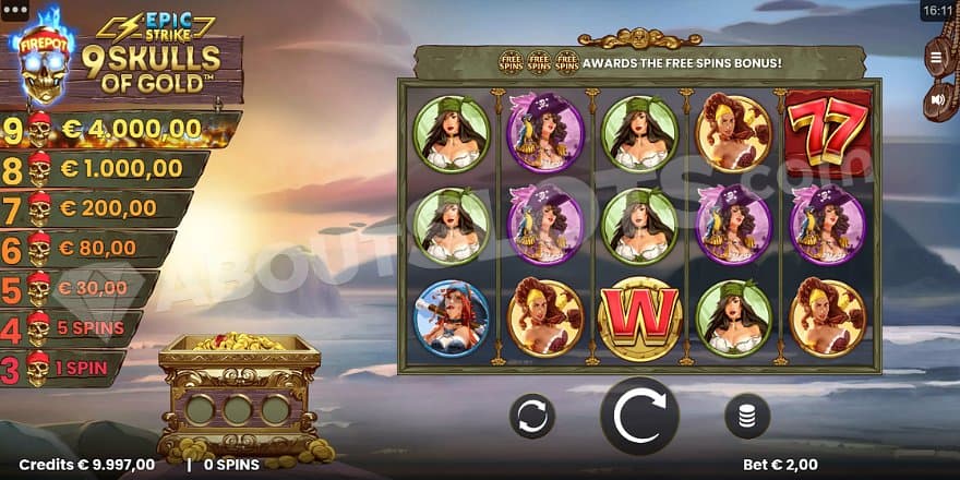 9 Skulls of Gold is a new casino slot from Buck Stakes Entertainment following four pirate women in their hunt for treasures. The game and its features are almost identical to the recently released Money Mines, where we explored a fantasy world beneath the earth’s surface. The female pirates can award spins in the base game and cash prizes in the free spins, where you can start with up to 30 spins and a 3X multiplier. You’ll also find the Firepot feature, where 9 Skulls of Gold award 2000X the bet in one spin.