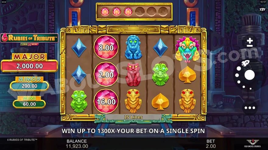 6 Rubies of Tribute is a new casino slot from Old Skool Studios set in a hidden Aztec temple. The Aztecs were a Mesoamerican culture in today’s Mexico that had its peak in the 14th and 15th centuries. The culture is known for being modernly organized into city-states and brutally violent at times. The temple offers the player a 5X3 grid with the possibility of triggering both free spins and the Link&Win respins feature. The three middle reels will merge into one colossal symbol in the free spins, counting as 9 symbols of the same kind. It’s time to step into this temple and discover all it has to offer.