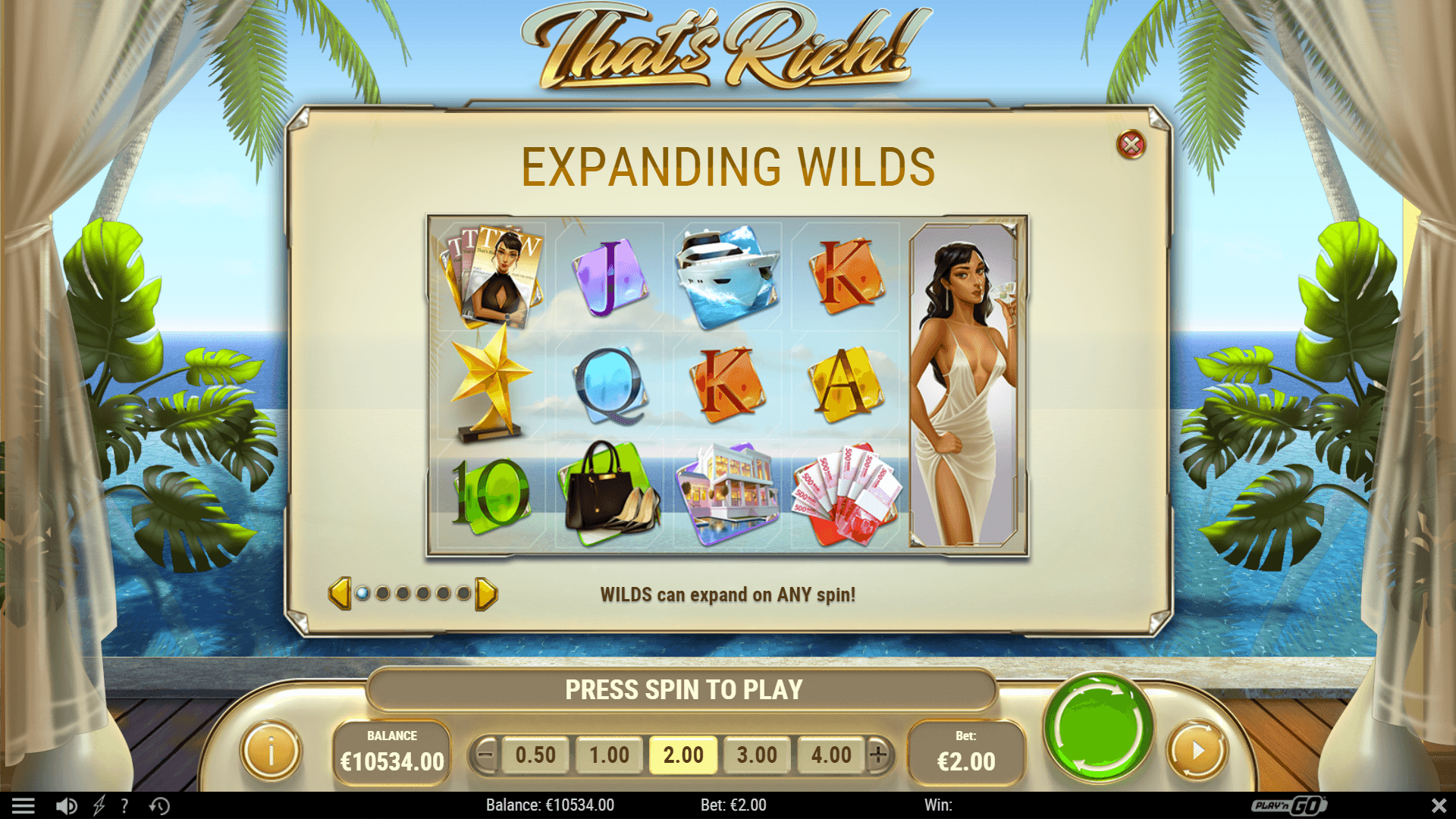The bonus starts with five free spins while landing extra scattered trophy symbols brings extra Win Spins. Furthermore, there is the That’s Rich slot’s Expanding Wilds bonus which triggers when the celebrity female wild symbol appears on all five reels. It is important to mention that during the That’s Rich slot’s Win Spins bonus, expanding wilds are also active.