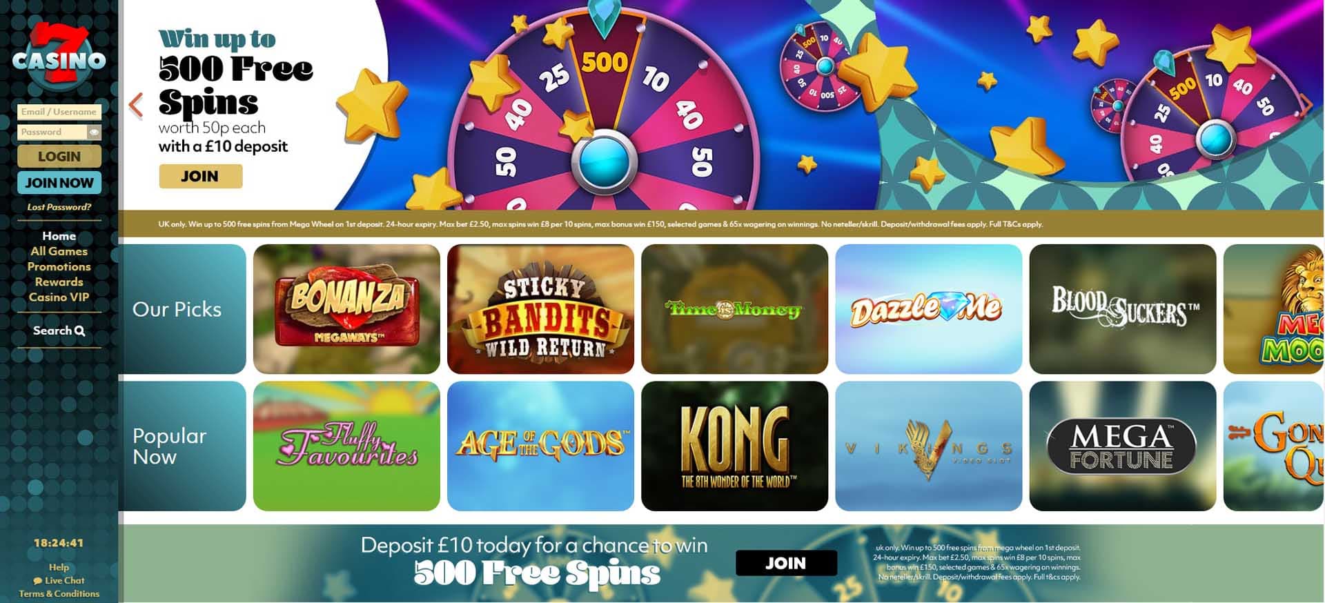 In terms of the on-going promotions, they have a VIP scheme through their 7 Club Rewards system. The loyalty scheme gives you the chance to claim rewards every seven days. The more you play, the higher your status will be as you move between ten different levels. The first three levels allow you to win free spins (up to 50), while you can ultimately claim a £500 cash bonus at the Level No 10.