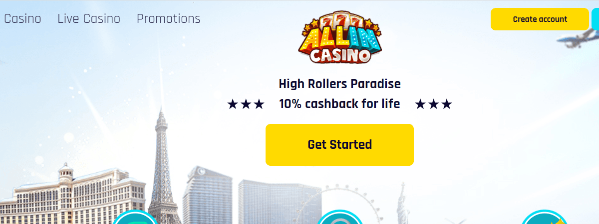 All in Casino is a super breezy online gambling site that invites you to relax. Indeed, the imagery on the site has been designed to help you imagine a life as a rich person. You can see imagery of the Eiffel Tower, the Statue of Liberty and much more.