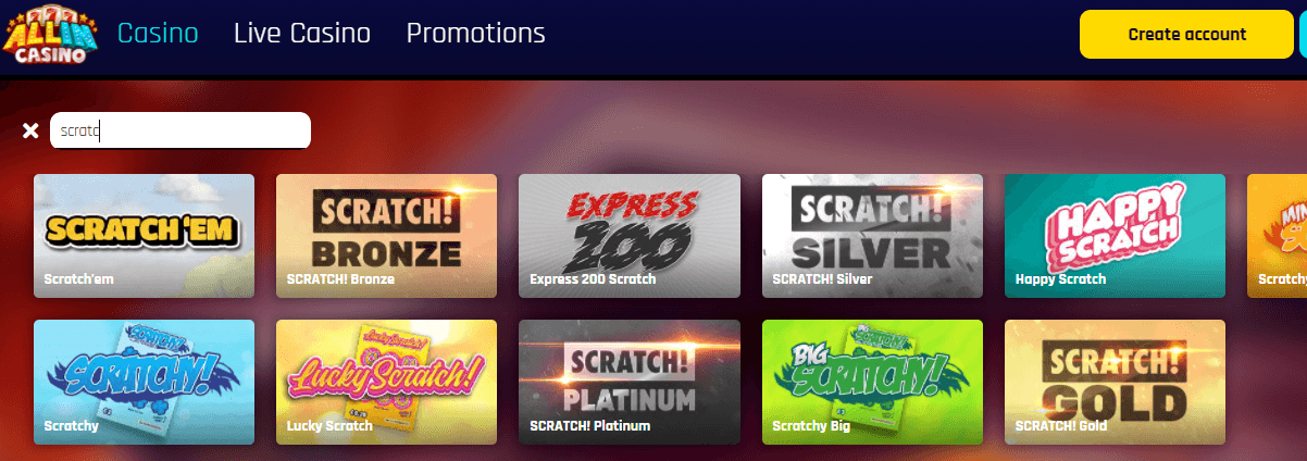 Players can try their hand at a small number of online Blackjack, roulette and baccarat. When it comes to instant-win games, there are only online scratchcards available. There are no video poker, keno or dice games.