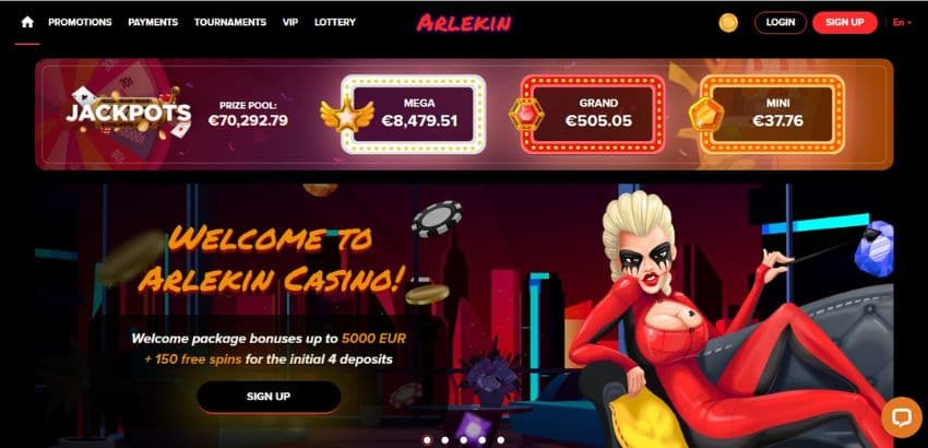 Arlekin Casino's welcome bonus is worth €5,000 plus 150 free spins.