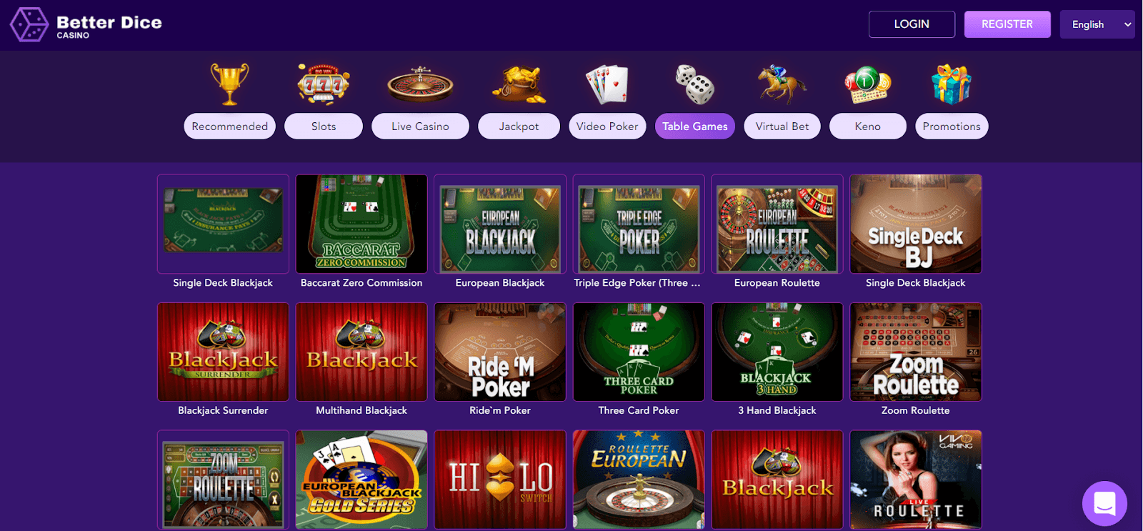 Table games are an entire section of any online casino, and on Better Dice's platform, you'll find over 200 table games to choose from.