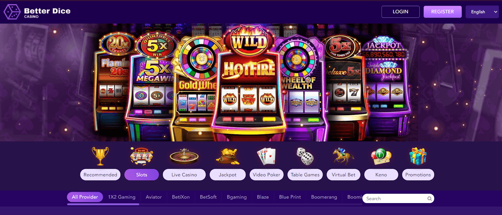 On Better Dice, you will be able to take advantage of many games, live casino rooms, and a great choice of slots, on which to play the bonuses generously offered by Better Dice, not only on registration but for every day of the week.