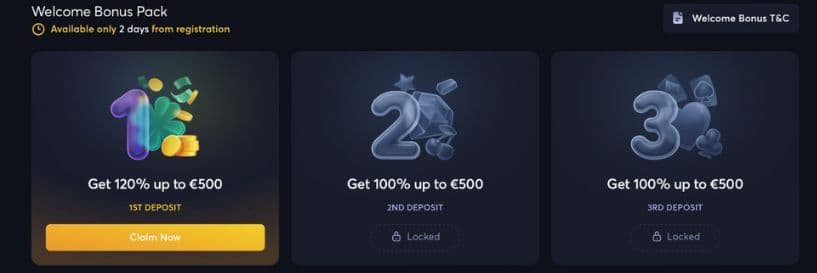 You can activate the 1st deposit Welcome Bonus offer using the code BLAZZE120 to access an additional 120% of your deposit amount up to €500. However, you can only claim this bonus if you deposit within 2 days of creating your Blazzio Casino account.