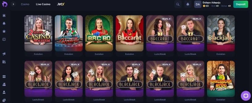 Some of the live games featured in Blazzio Casino include variants of Blackjack, Bac Bo, Baccarat, Poker, and Craps.