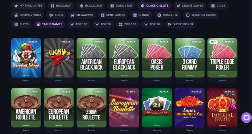 Compared to other online casinos, Blazzio casino spared nothing in designing the appearance and loading speed of the table games. The casino features an elite collection of roulettes, baccarat and blackjack, offering different versions of these games. Like the slots, Blazzio offers an easy game selection that leads you to the category or directly to the game you want. A few examples of the variants of the table games on Blazzio Casino are American Blackjack, Oasis Poker, 3D Card Rummy, American Roulette, Zoom Roulette, European Roulette, and so on.