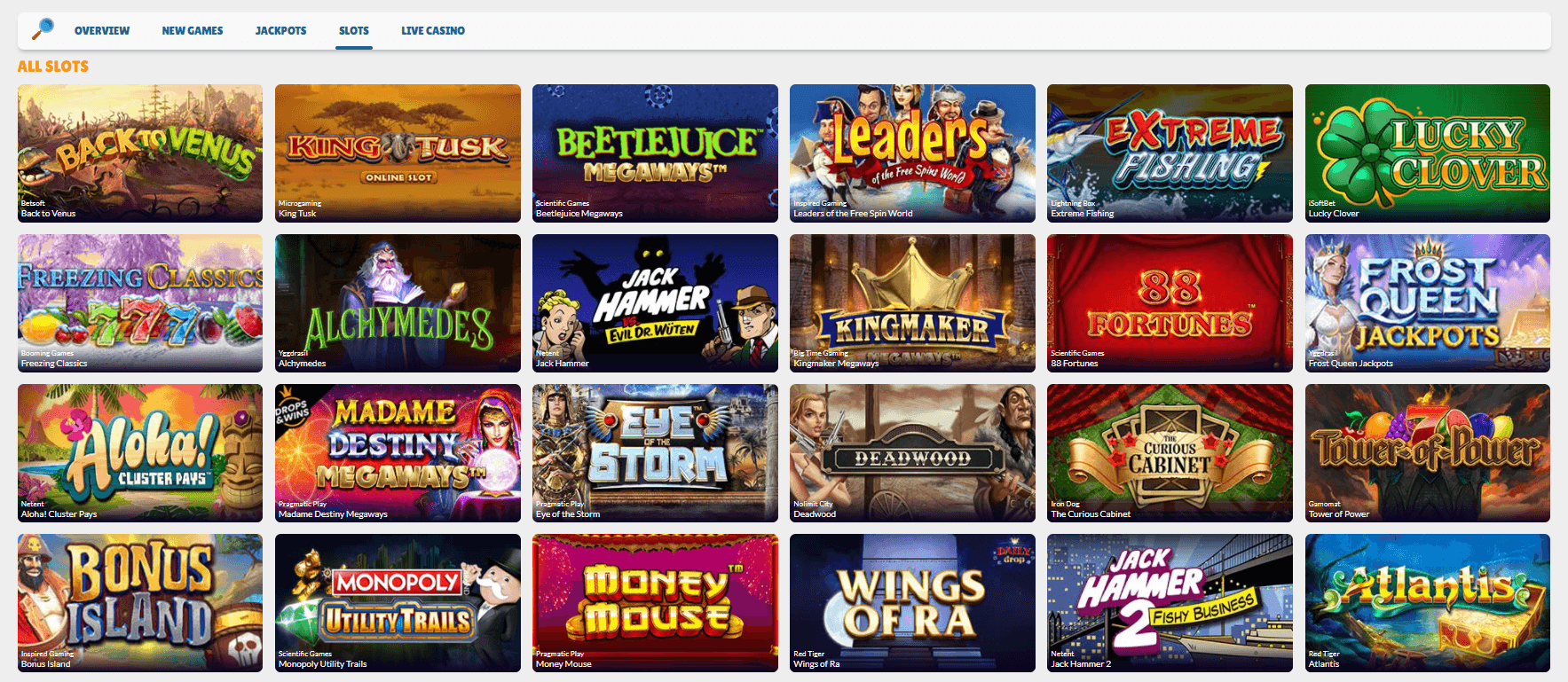 The home page makes a tidy impression and prominently presents current special offers and jackpots. The games belonging to them are unfortunately not directly clickable and have to be accessed via the menu item "Games".