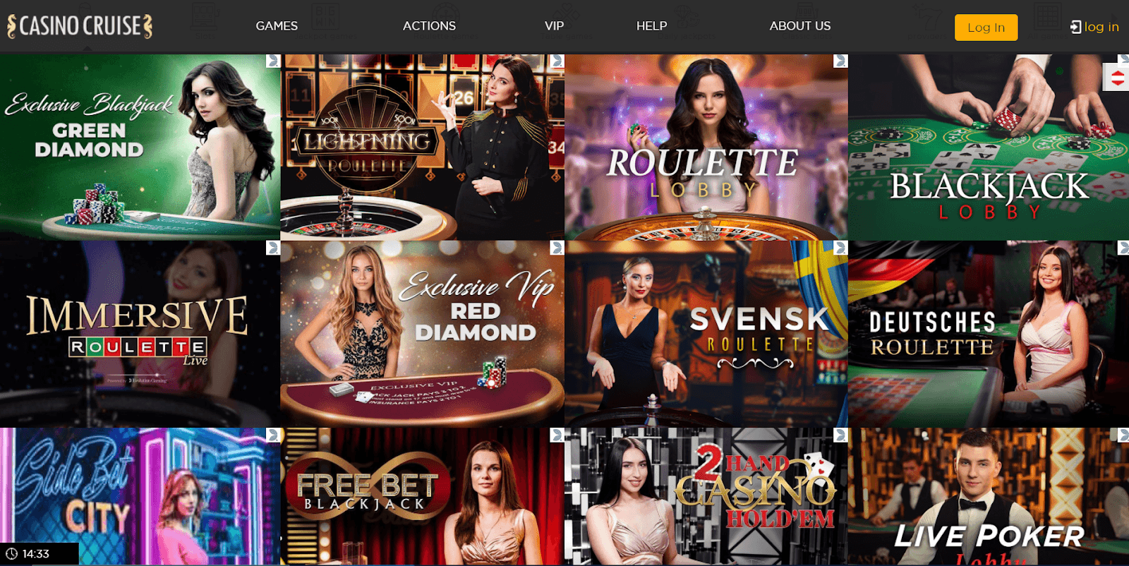 The online live casino at Casino Cruise is provided by Evolution Gaming. Here you can look forward to a total of more than ten casino games with real croupiers.