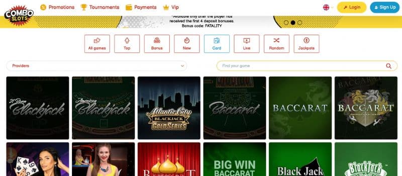 At Combo Slots Casino, you’ll be able to play several versions of Roulette, Blackjack, Poker, Baccarat, and many more games.