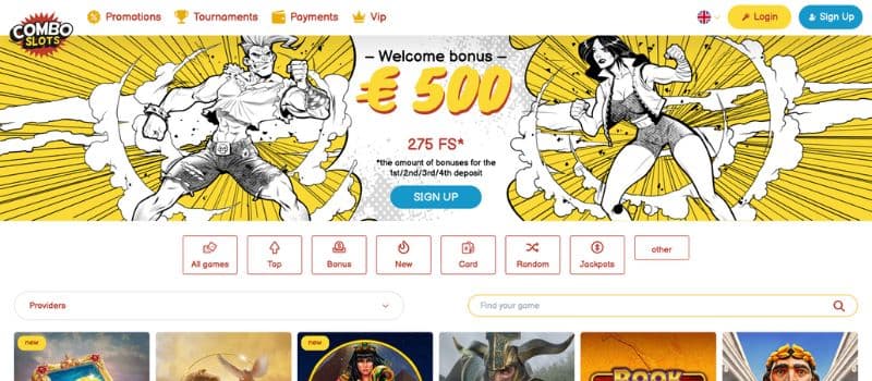 Aside from a welcome bonus worth 500 euros, you can enjoy reload bonuses, VIP bonuses, free spins, cashback at Combo Slots Casino.