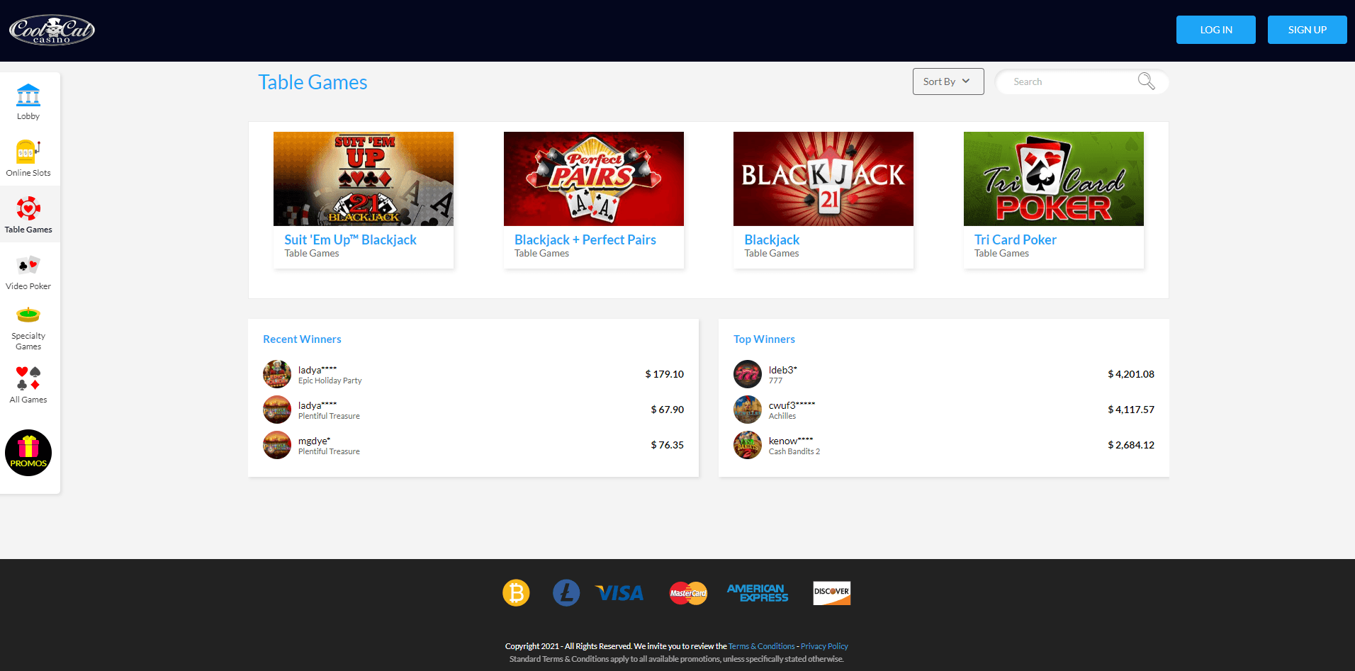 6. Which table games does Cool Cat Casino offer?
