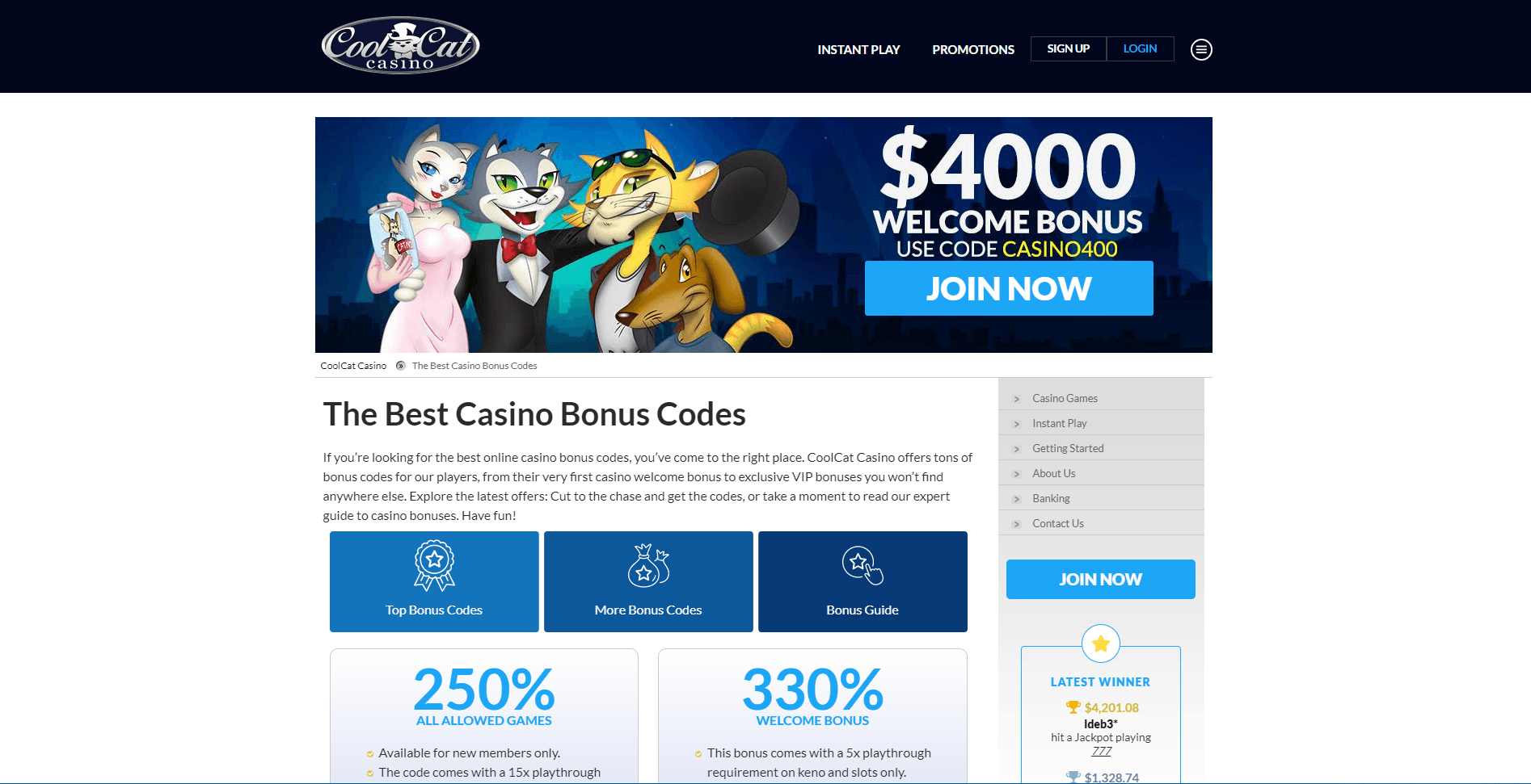 To set you off on the right foot, the good folks at Cool Cat are throwing in a $25 no deposit bonus that can be spent on a variety of games. Simile input casino bonus code COOLEST25 once you have signed up to redeem it.