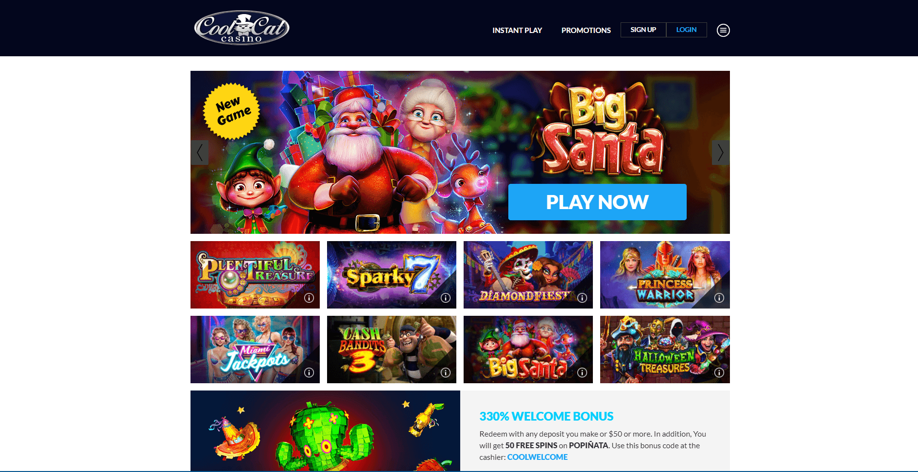 All new players who make a minimum deposit of $50 or more can claim a 330% free welcome bonus up to unlimited + 50 free spins on slot game POPINATA when applying bonus code COOLWECOME.
