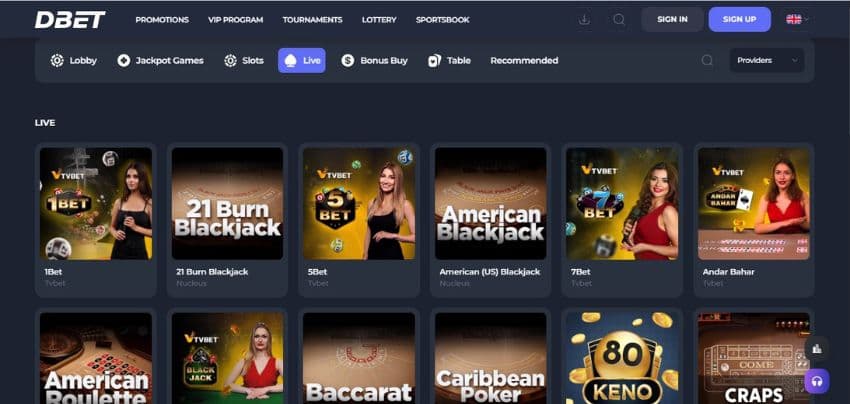 - What games will you find on Dbet Casino's live section?