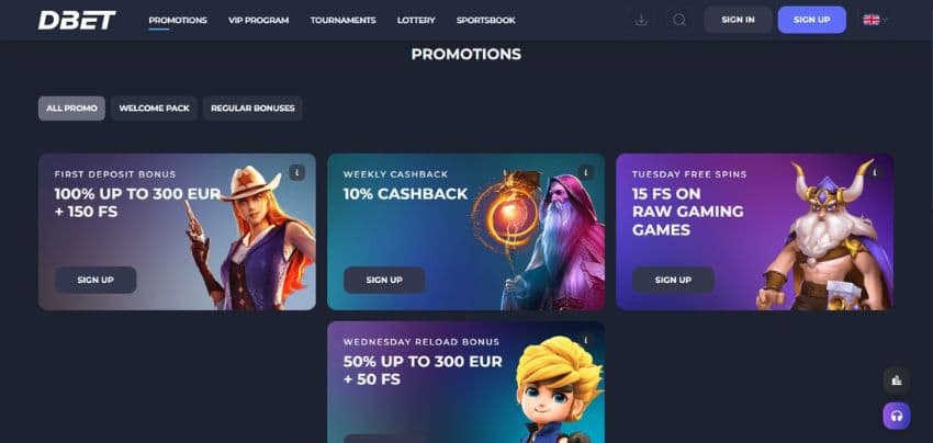 Being a player-centric platform, Dbet offers a generous casino welcome bonus, other promotions, and cashback, making Dbet one of the best bonus casinos. Additionally, it provides a VIP loyalty system to celebrate your engagement on the site with rewards and juicy privileges.