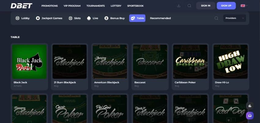 - Which table games does Dbet Casino offer?