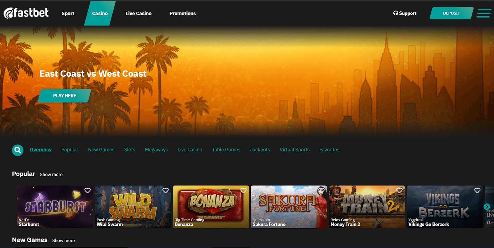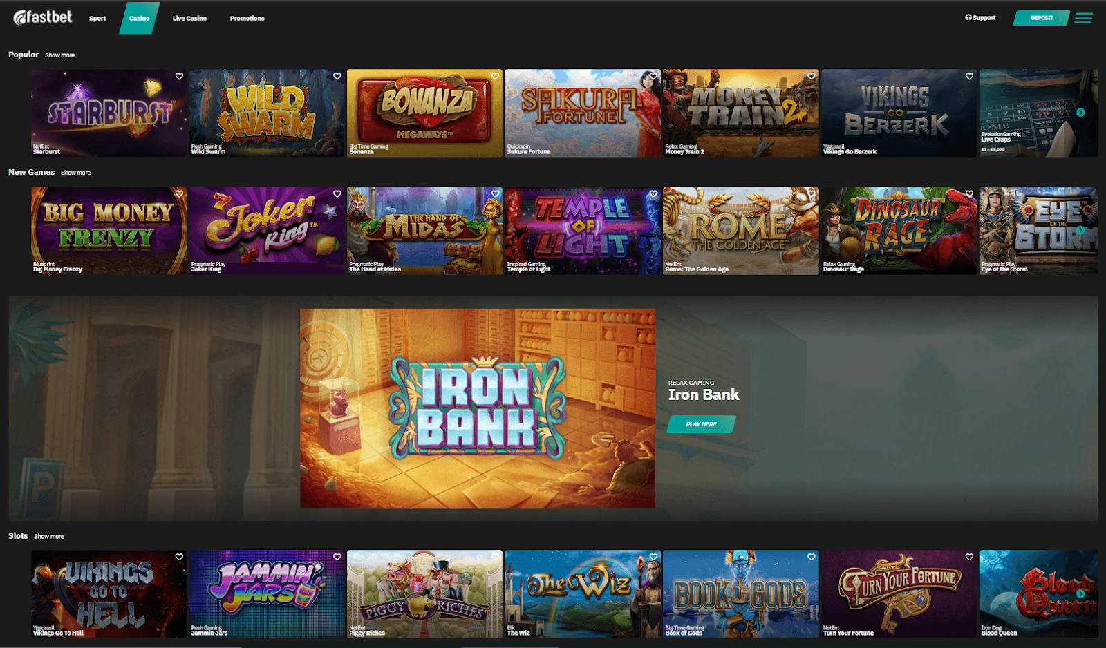 The selection of slots on FastBet is excellent. There are around 650 slot machines, and the casino’s selection is focused on modern, current, and popular slots. For example, on Fastbet, you’ll find slots like Starburst, Wild Swarm, Sakura Fortune, Money Train 2, and Vikings Go Berzerk.