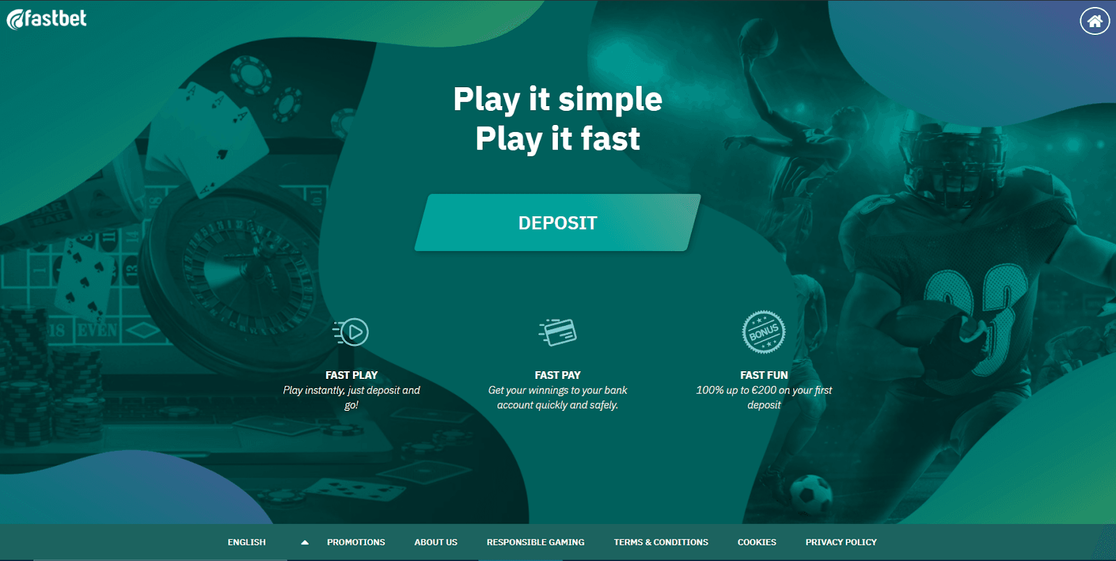 Fastbet Casino includes a deposit bonus, and with that, no free spins are provided. Their standard Welcome Bonus is currently 100% up to €200, with the following requirements: it needs to be wagered 4x within Sports Betting, 20x in the Casino, and live casino bets count as 20 percent towards wagering.