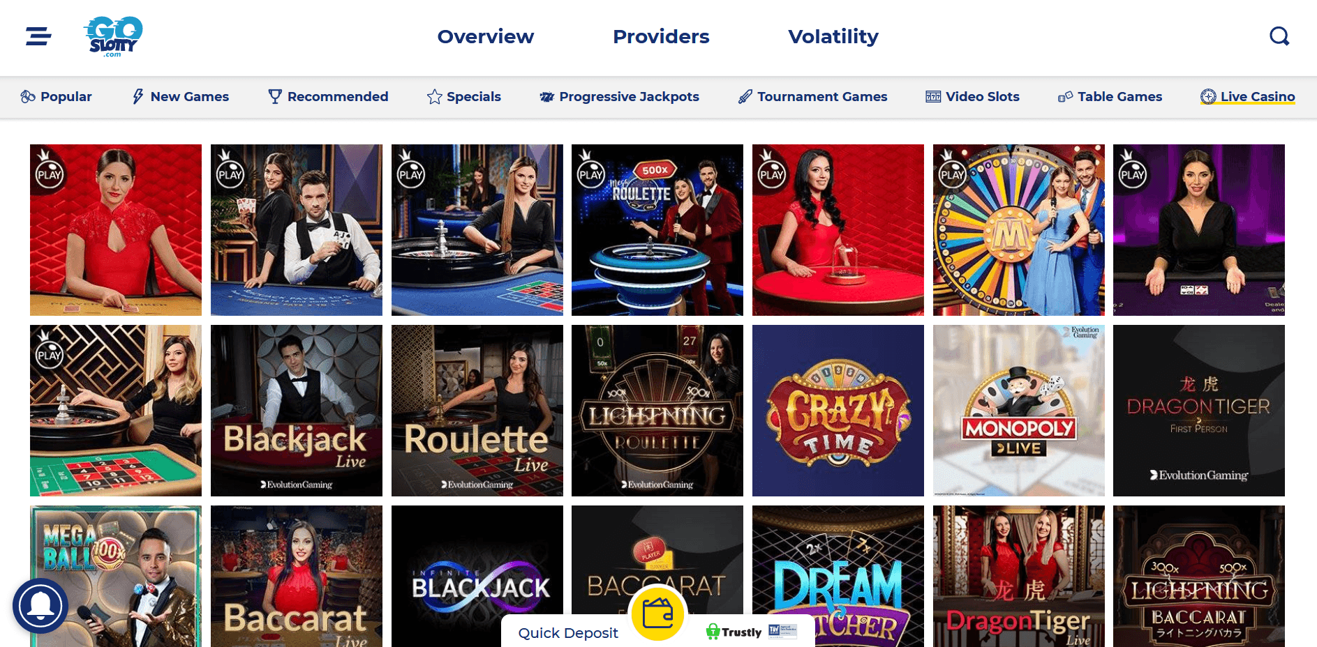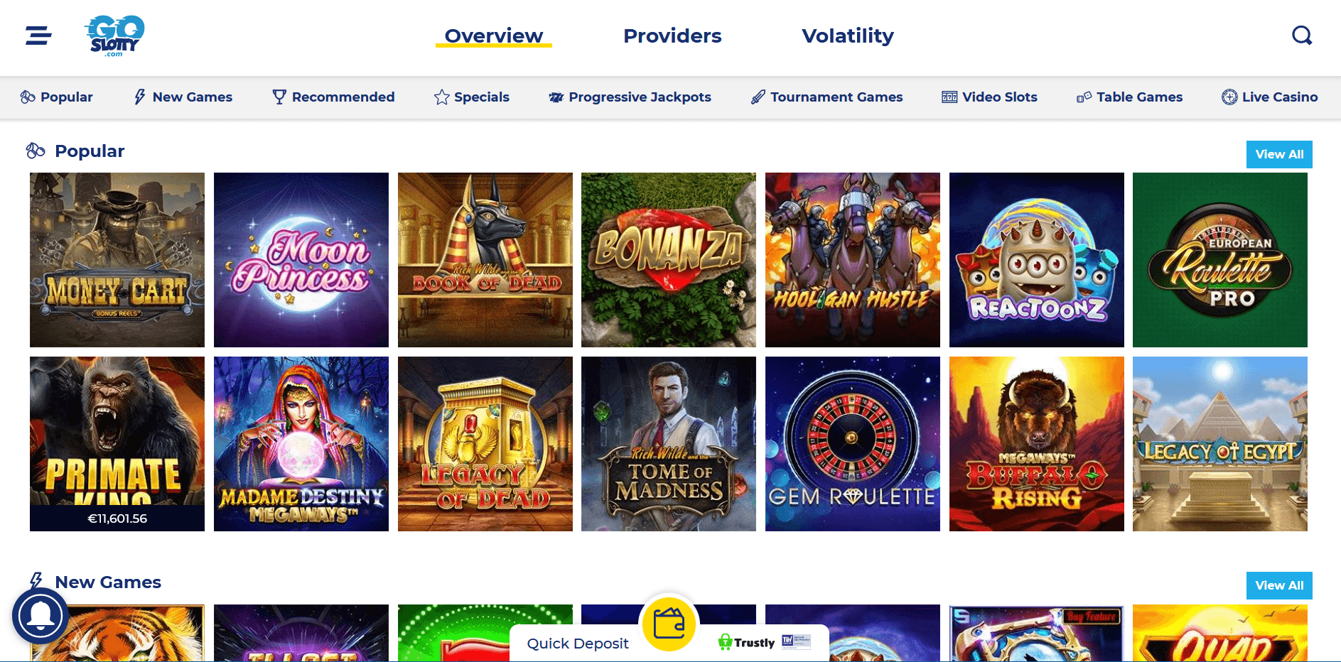 Go Slotty has joined forces with leading software game developers, including NetEnt, Iron Dog Studios, NextGen Gaming, Pragmatic Play Live, Ezugi, Evolution Gaming, Play ‘n GO, Big Time Gaming, Blueprint Gaming, Elk Studios, SG Gaming, Merkur Gaming, Oryx Gaming and High 5 Games amongst others.