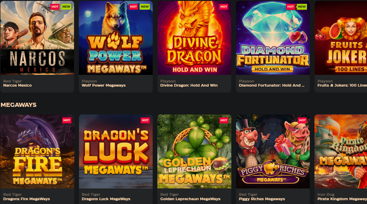 As it’s common these days, you can find a wide variety of slot games, including various reel setups, paylines and volatility levels.