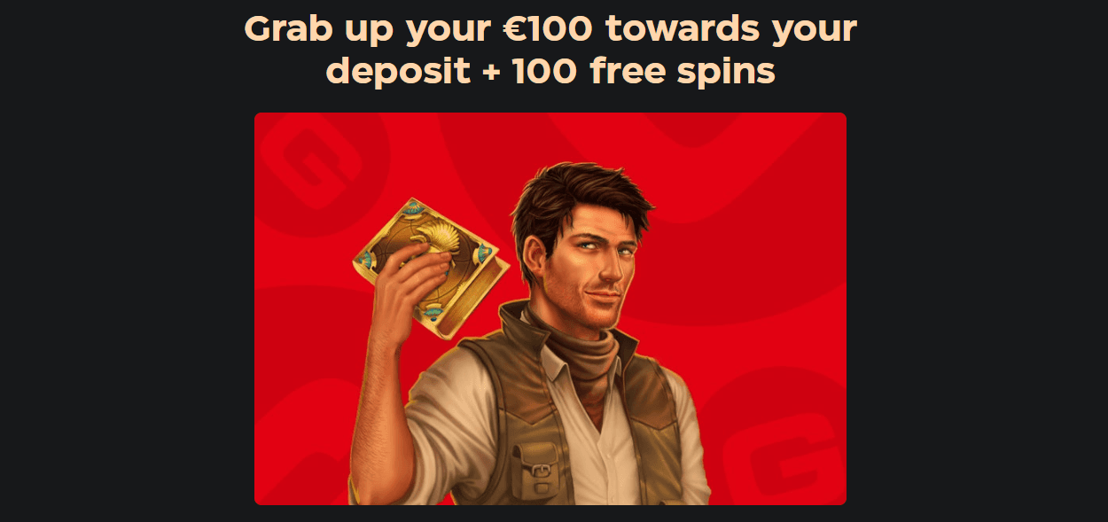 - 1st deposit: 100% match deposit bonus up to €100 + 100 free spins on Book of Dead when using bonus code G100
