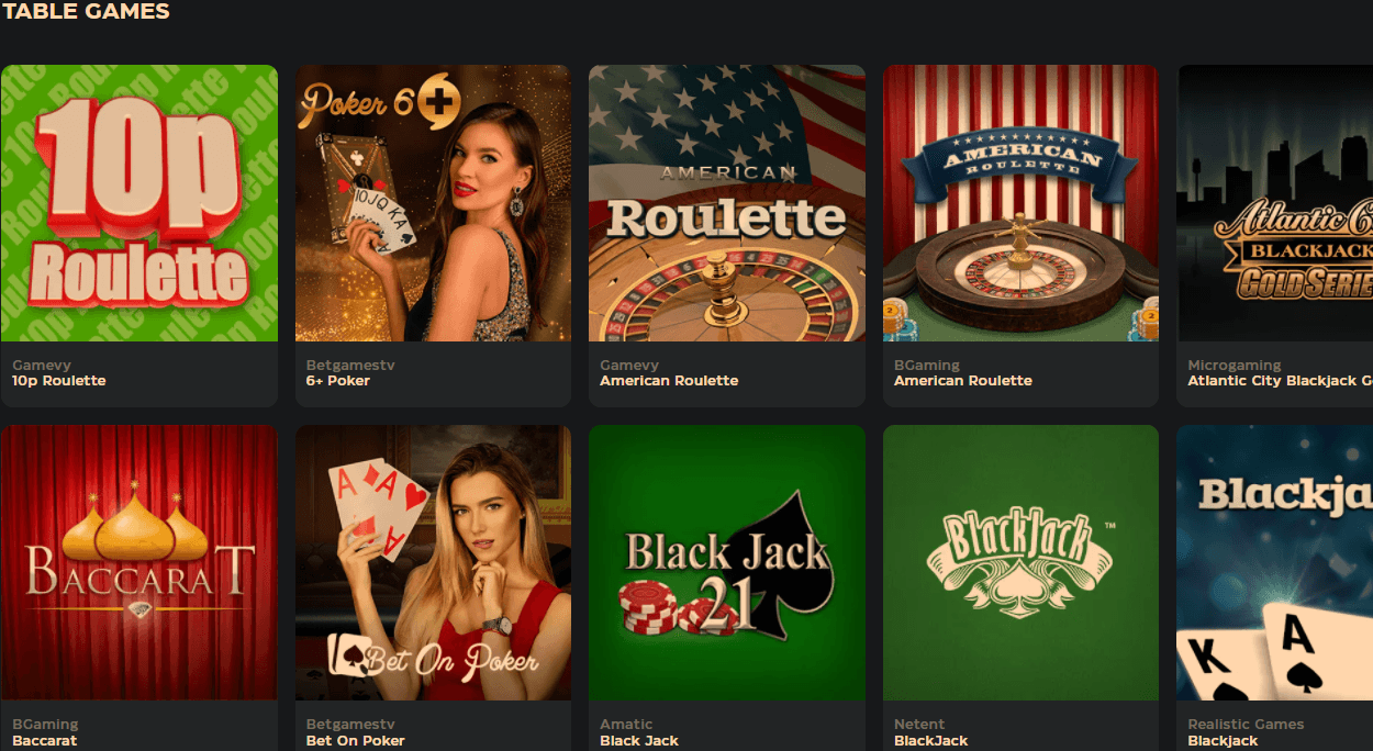 There are numerous table games, including variations of games such as online Blackjack, online Roulette, Baccarat and video poker.