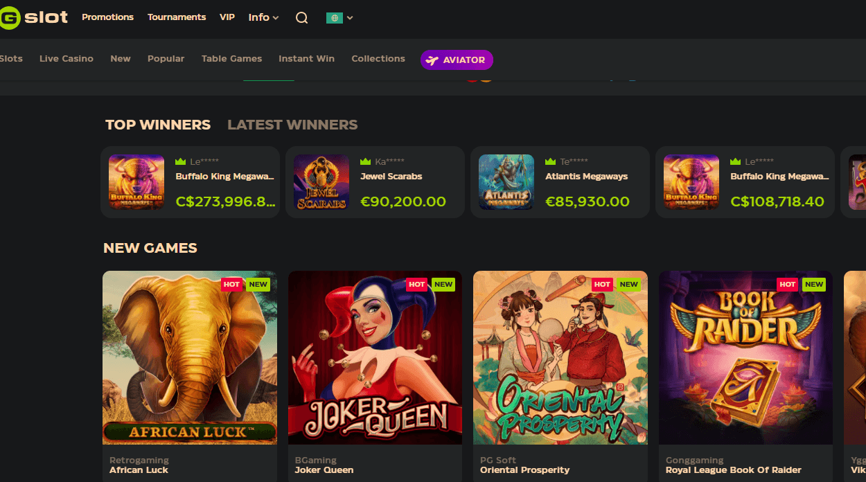 GSlot Casino is a relatively new casino having launched in 2020. In addition to top games and promotions, players can join in a variety of slots tournaments, where they can win cash prizes and up to 1,000 free spins daily.