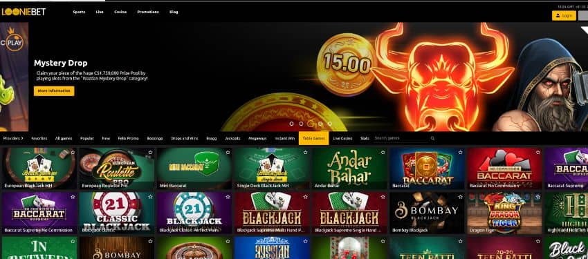 Table games provide a window to access virtual casino games that deliver the same experience as live options. LoonieBet Casino features many variations of virtual versions of table games such as baccarat, roulette, and blackjack.