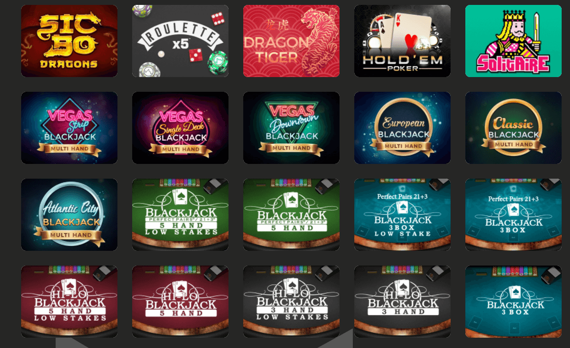 Double Chance and Blackjack, all the way to Solitaire, Sic Bo, and Dragon Tiger.