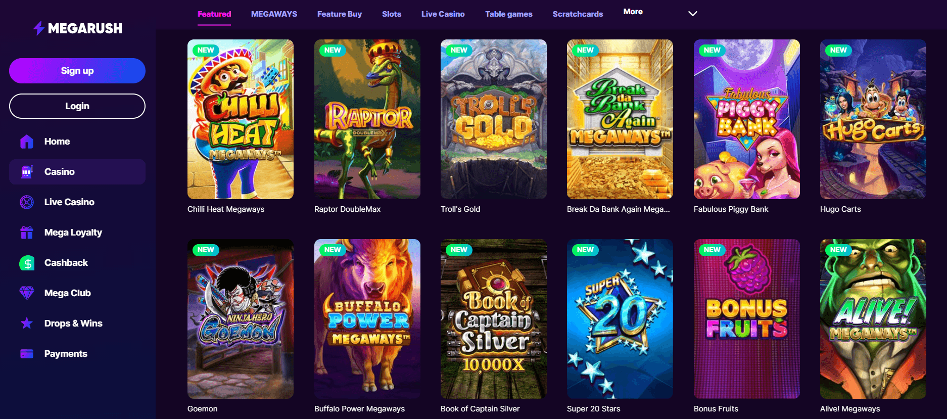 If you’ve read enough and you’re ready to play, follow this link to land on Megarush Casino! Keep reading to find out much more about what the casino has to offer, and what are its biggest flaws.
