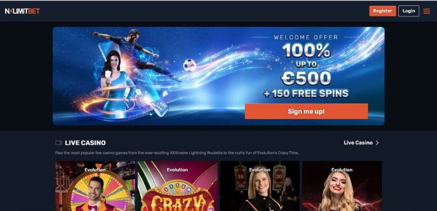 Nolimitbet Casino's welcome bonus is worth 100% up to €500 plus 150 free spins.