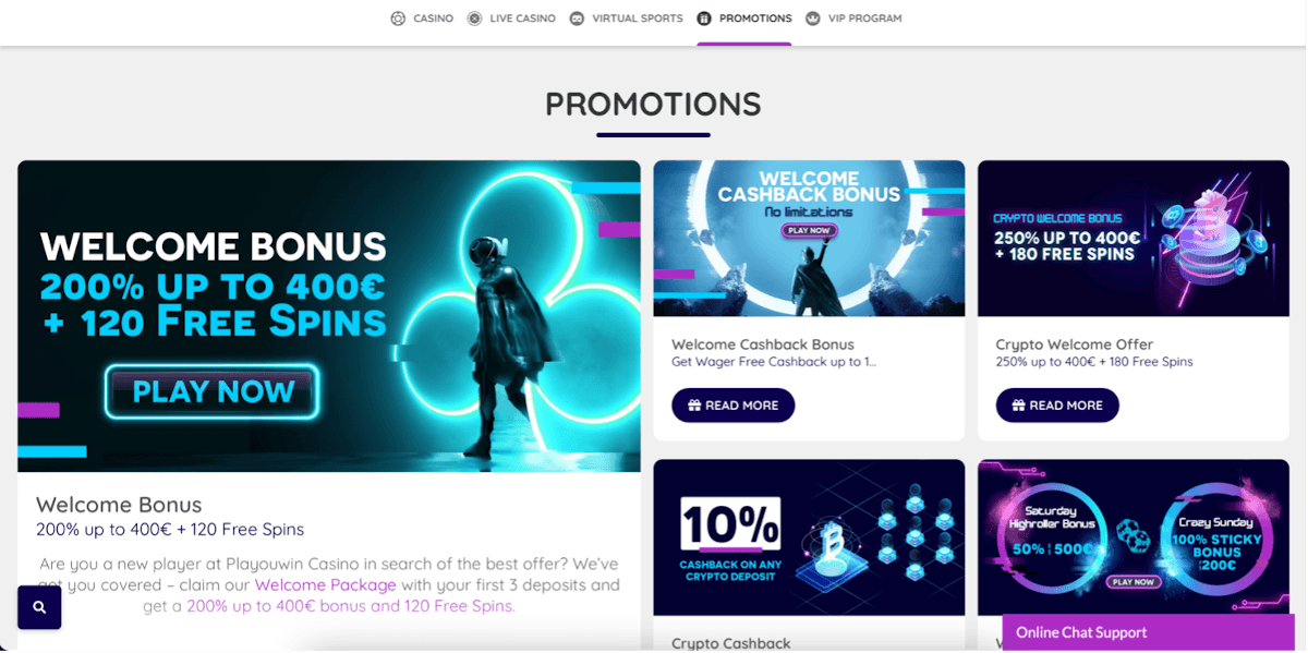 Aside from a welcome bonus up to 400 euros, at PlaYouWin Casino you will get to enjoy regular promotions, extras, and tournaments.