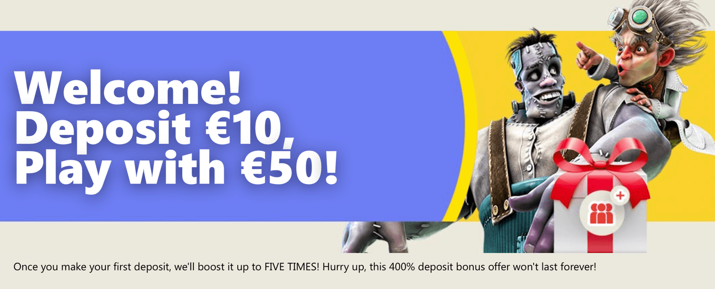Welcome offer A: 400% bonus up to 40 euros (35x wagering requirements)