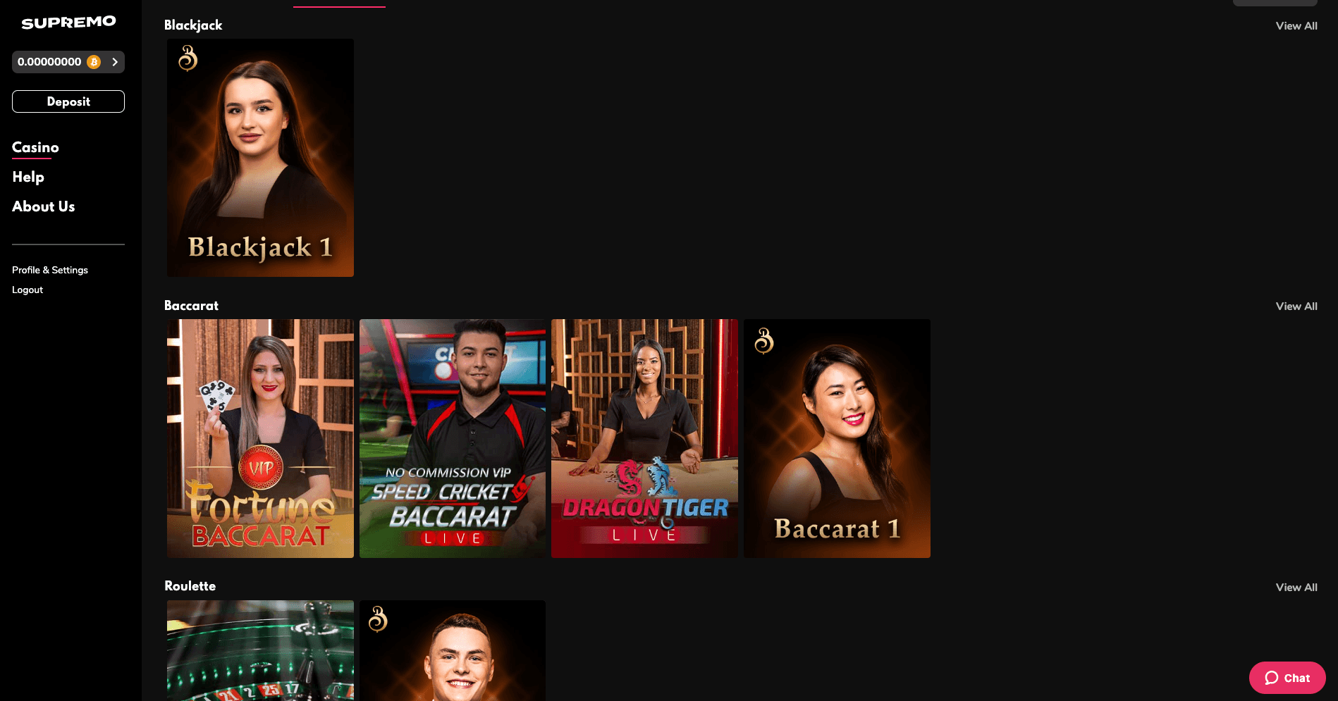 The live casino of Supremo Casino is extensive, with over 120 different games from several game providers.