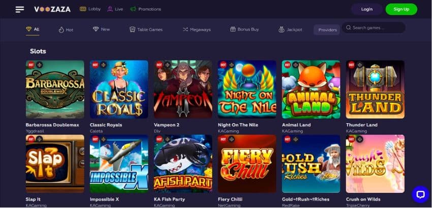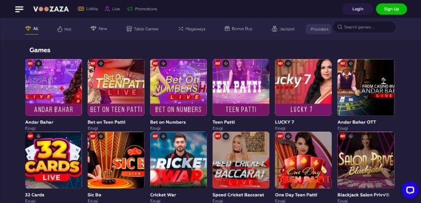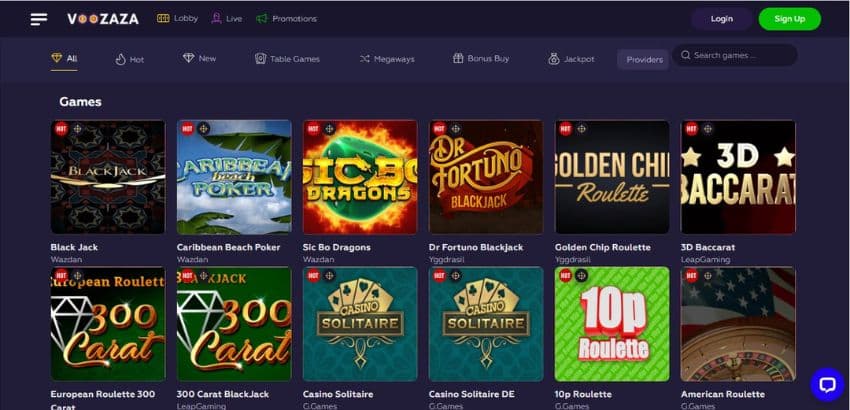 Voozaza Casino Games and Offerings