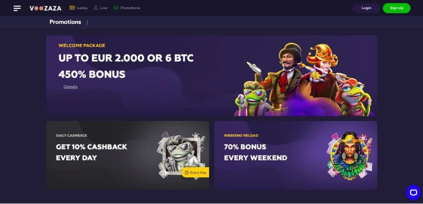 Voozaza Casino's welcome bonus is worth 450% up to €2,000.