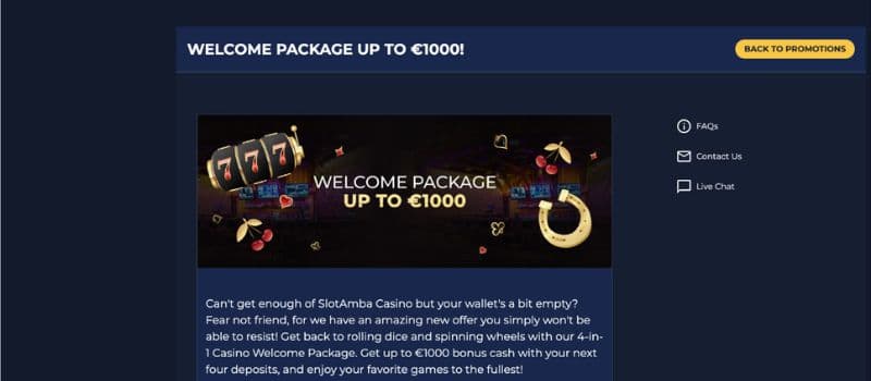 The Welcome Package bonus is worth €1000. However, you can only claim from your first four deposits in the casino.